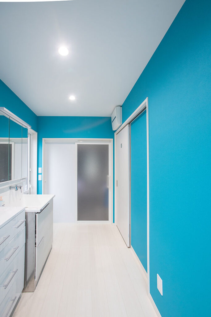 玄関→洗面所→キッチン→リビングの回遊動線になる間取りがこだわりです。