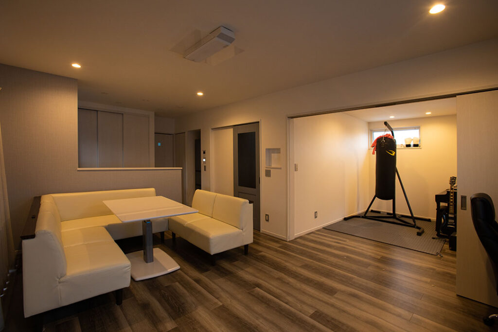 私達の要望で吹き抜けにしていただいたのですが、1F、2Fの音がよく響きます。