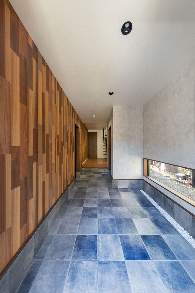 地震対策として、中央にタンス・物置部屋を設け寝室やリビングには倒れる家具を置く必要がなくなったのに、使い勝手は各部屋に家具が有るのと変らないし、水害対策として2mの嵩上げをしたが、公道の坂道を利用してからの緩い進入路で入ることができる等、安全と使い勝手の両立が出来ている。