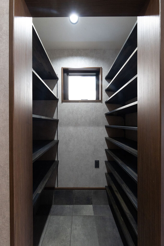 大きめのパントリーを設けたので、必要な物がすぐ使え、物置等へ取りに行くことがほとんどない。