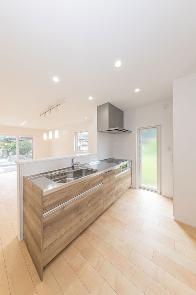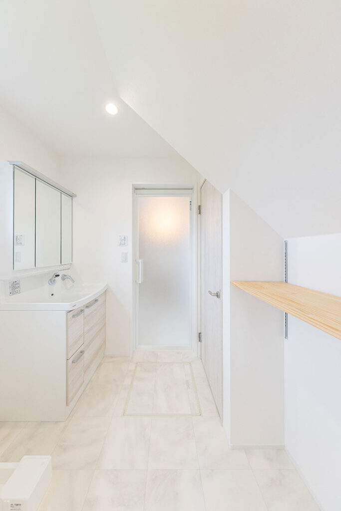 玄関→洗面所→キッチン→リビングの回遊動線になる間取りがこだわりです。