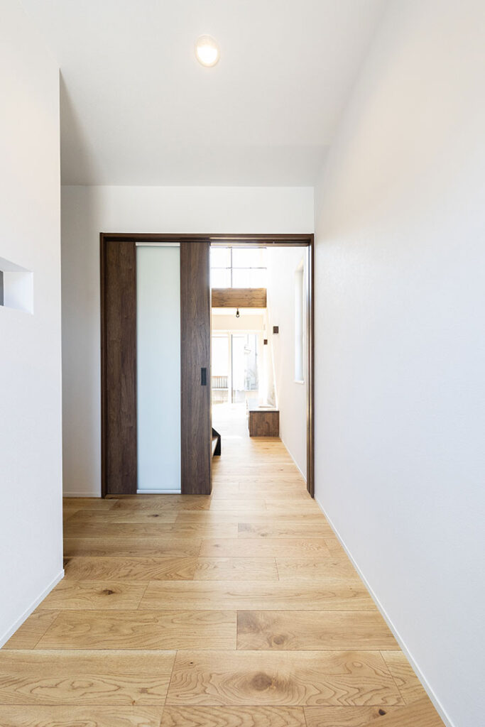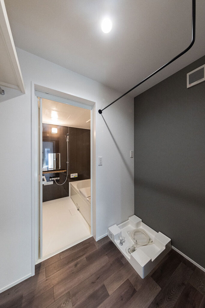 玄関→洗面所→キッチン→リビングの回遊動線になる間取りがこだわりです。